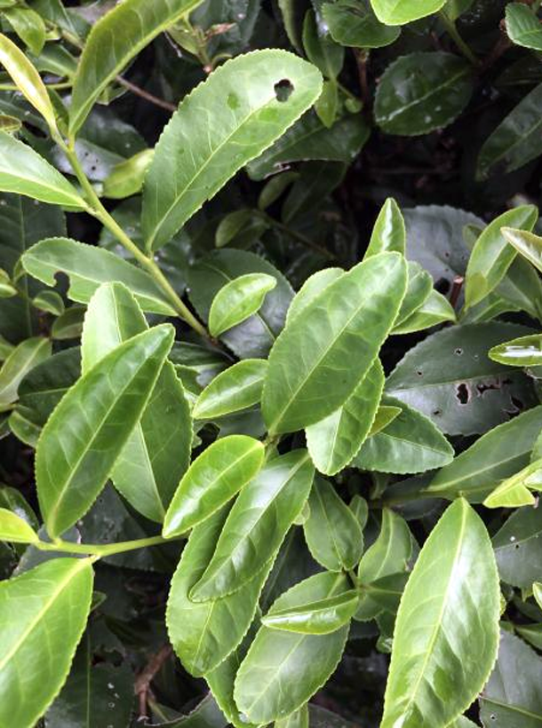 灌木型、小葉類、早生種。植株樹姿半開張,分枝密,葉姿上斜。葉片呈長橢圓形,葉尖較鈍,葉面微隆起,葉色黃綠,富光澤,葉肉較薄,葉質柔軟,側脈明顯,鋸齒較粗、整齊,葉緣微波,芽葉纖細,色黃綠,嫩葉內折。
