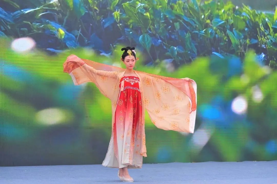 虎年顯虎勢,茶文化旅游節(jié)現(xiàn)場人聲鼎沸,熱鬧非凡,開幕式在氣勢磅礴的鼓舞《和鼓萬興·共襄盛世》中拉開序幕。歌伴舞《你來了》、情景劇《智慧未來》、茶藝舞蹈秀《春意茶暖》、華裳走秀《唐韻茗風(fēng)》等節(jié)目精彩紛呈,贏得現(xiàn)場觀眾陣陣掌聲,吸引了不少游客駐足觀看。演出節(jié)目展現(xiàn)了出濃郁熱情的本土風(fēng)情和特色茶藝文化,現(xiàn)場觀眾置身茶園,看茶園美景,聞茶葉清香,聽茶歌、看茶舞、品春茶,茶文化氛圍濃厚,傳統(tǒng)茶文化煥發(fā)出跨越時空的永恒魅力和生命力。
