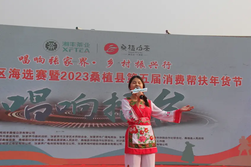 2023 年 1 月 10 日,湘豐茶業(yè)·桑植白茶《唱響擂臺(tái)》張家界賽區(qū)海選賽暨 2023 桑植縣第五屆消費(fèi)幫扶年貨節(jié)活動(dòng)在桑植縣民歌廣場(chǎng)隆重舉行。《唱響擂臺(tái)》是中國(guó)首檔定位音樂(lè)推介幸福的鄉(xiāng)村綜藝秀,本次活動(dòng)由桑植縣 23個(gè)鄉(xiāng)鎮(zhèn)(每個(gè)鄉(xiāng)鎮(zhèn)推舉一位民間歌手代表)采取線下場(chǎng)地擂臺(tái)賽的方式,現(xiàn)場(chǎng)專業(yè)評(píng)委評(píng)判,呈現(xiàn)歌曲產(chǎn)品雙向賦能、推薦家鄉(xiāng)好物,打造幸福鄉(xiāng)村主題歌曲。讓桑植的歌聲越過(guò)大山,讓更多人聽(tīng)到!